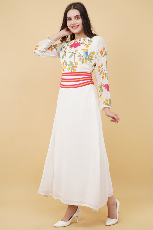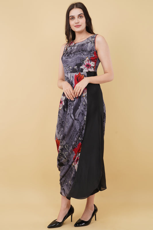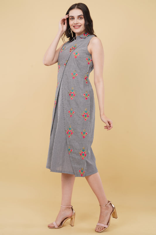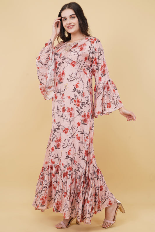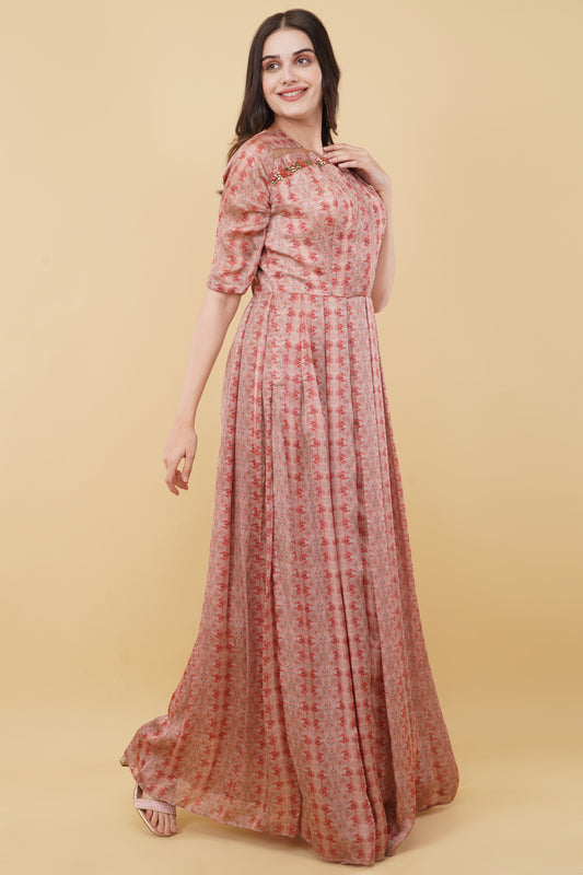 Coral Padded Printed Straight Cut Dress with Embroidered Back
