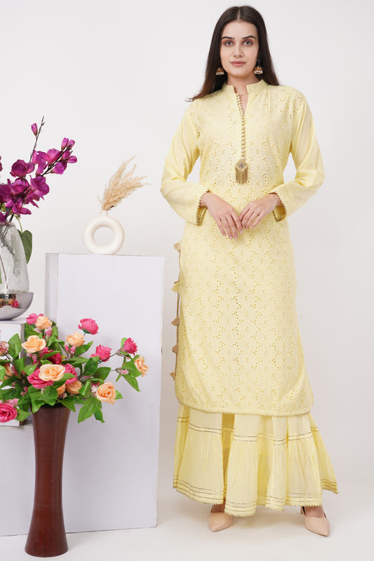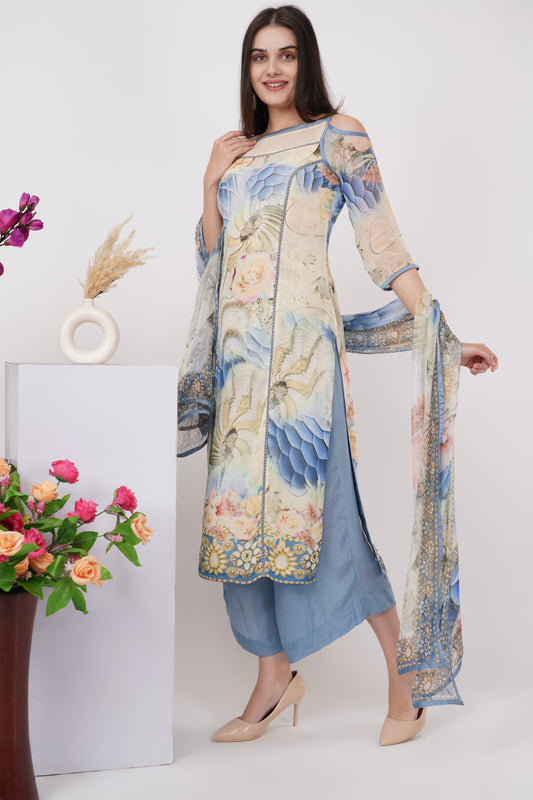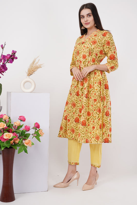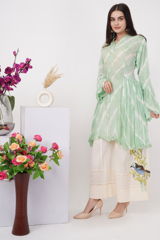 Green Tie and Dye Kurta Set with Bird Motif on Pants