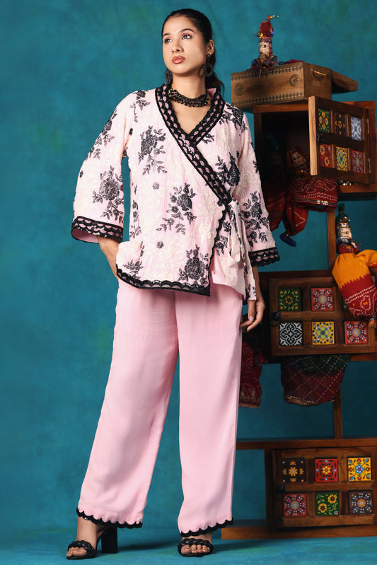 Powder Blue Embroidered Jumpsuit and Jacket Set