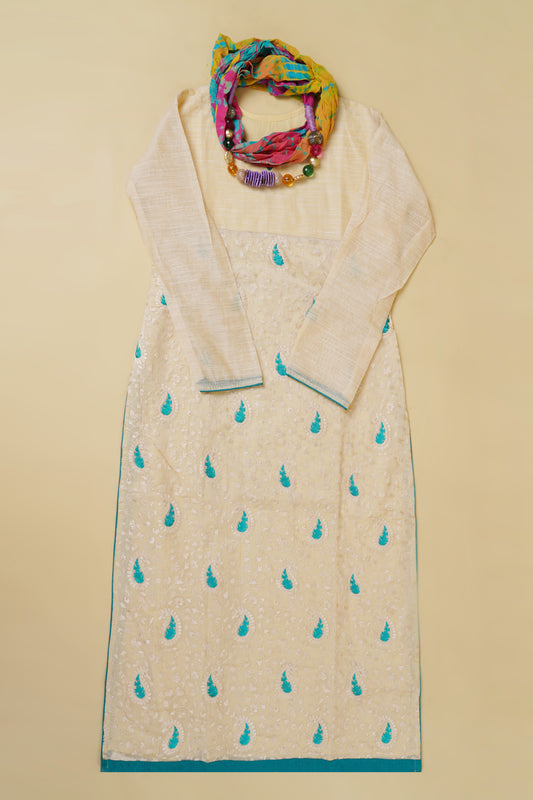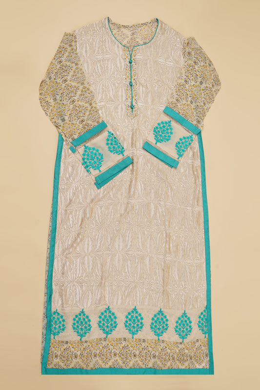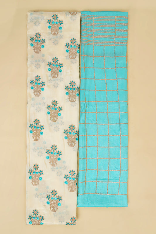 Beige and Aqua Blue Embroidered Unstitched Suit Piece
