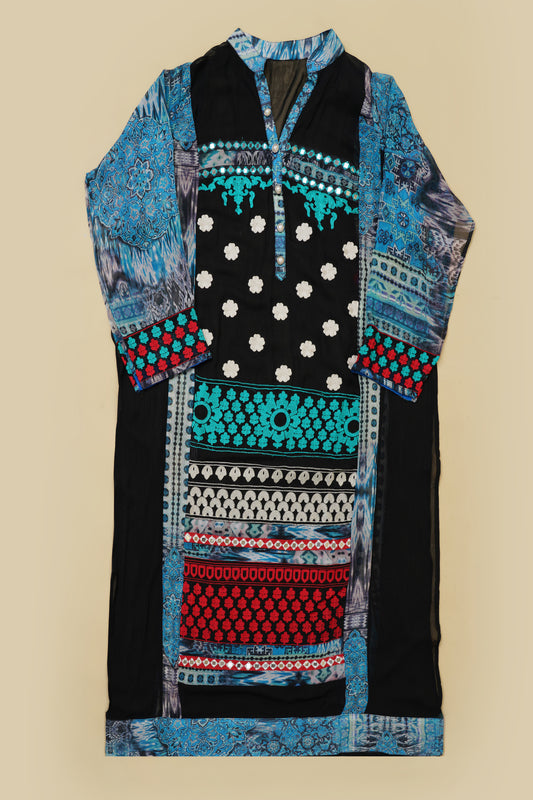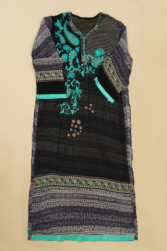Black and Aqua Blue Embroidered Unstitched Suit Piece
