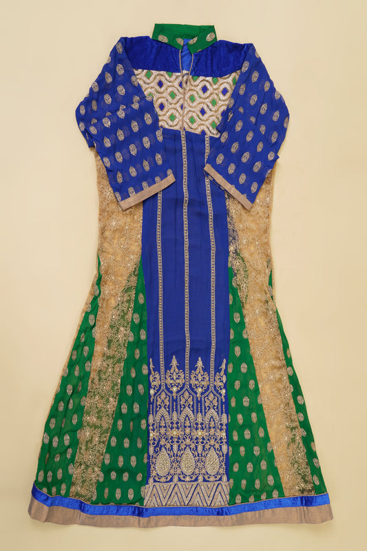 Blue and Green Gota Embroidered Unstitched Suit Piece
