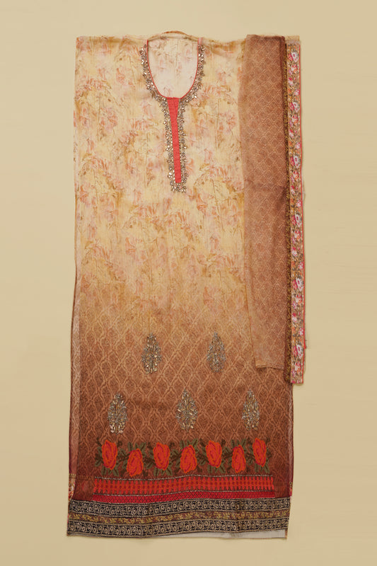 Beige, Pink and Orange Embroidered Unstitched Suit Piece