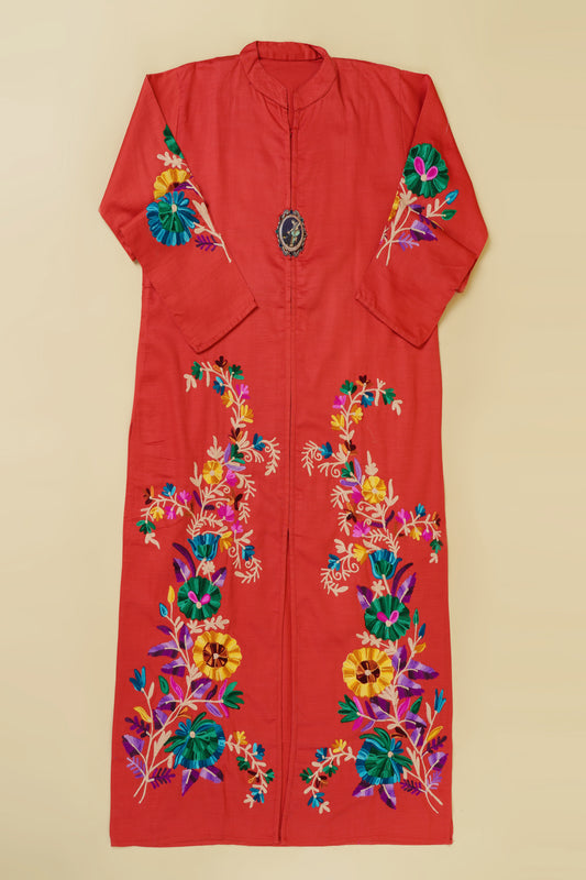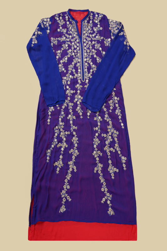Blue and Red Embroidered Mirrorwork Unstitched Suit Piece