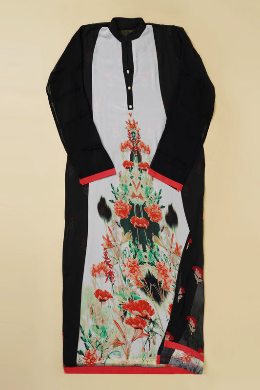 Monotone and Red Digital Printed Unstitched Suit Piece