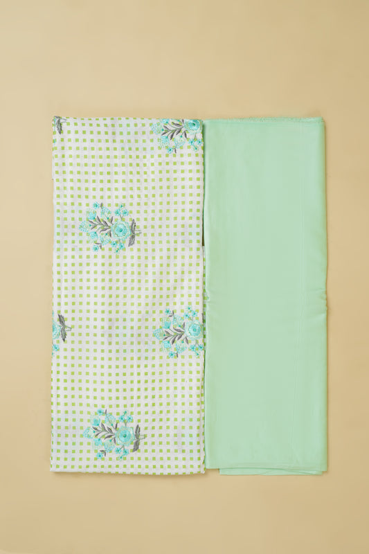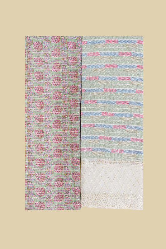 Mint Green Printed, Embroidered and Lace Unstitched Suit Piece