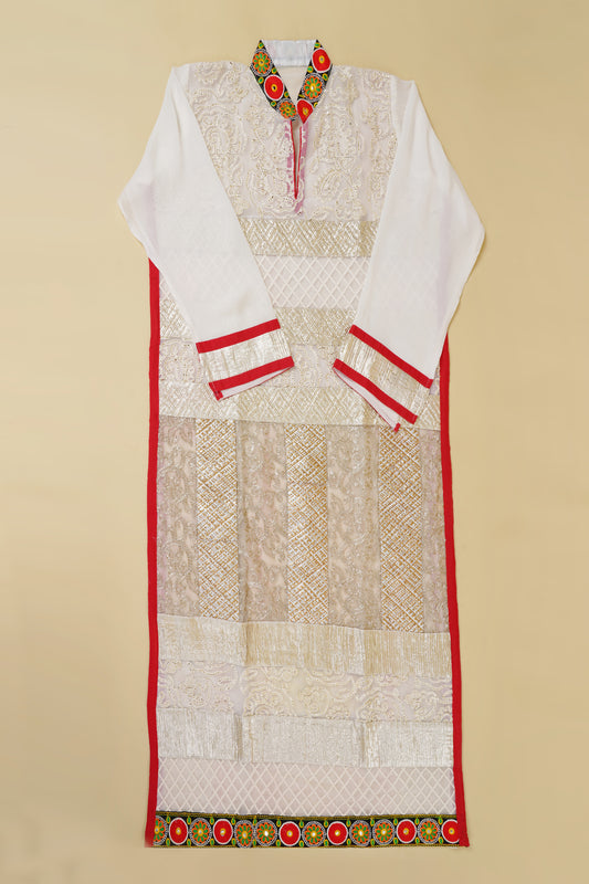 Beige Embroidered Unstitched Suit Piece with Beaded Stole