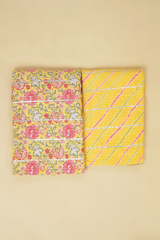 Pink on Yellow Embroidered Unstitched Suit Piece