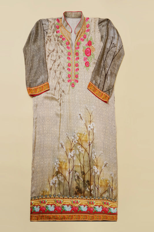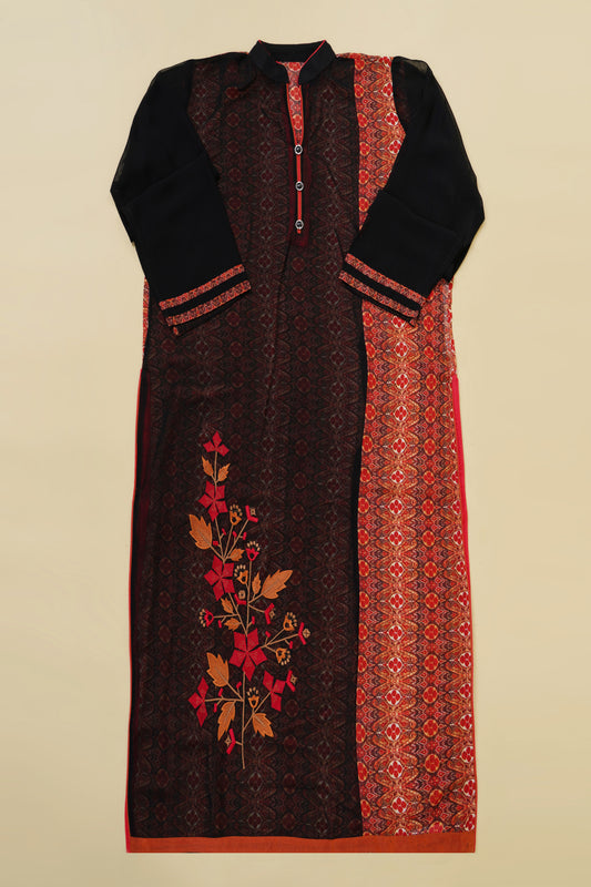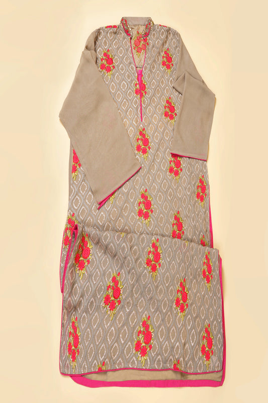 Grey and Red Floral Embroidered Unstitched Suit Piece