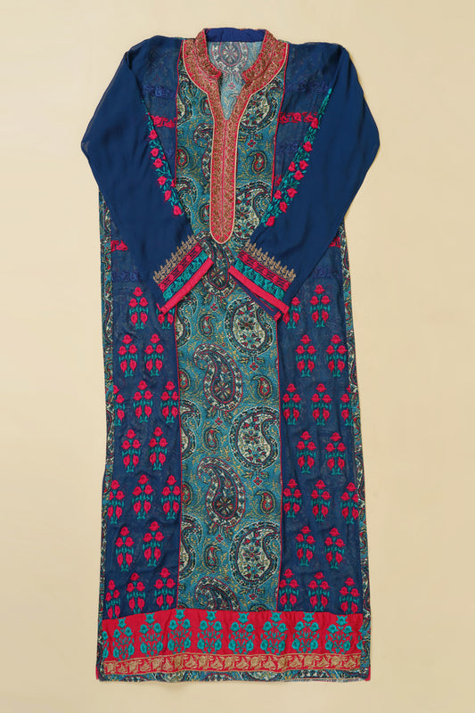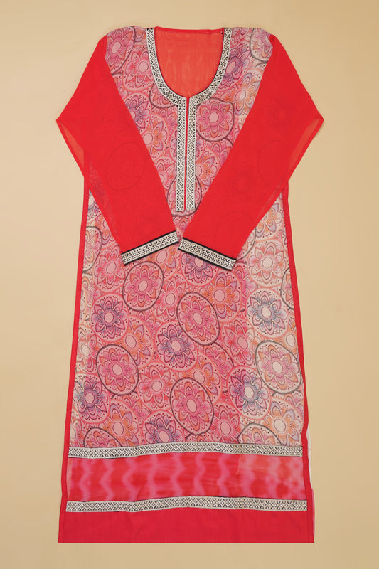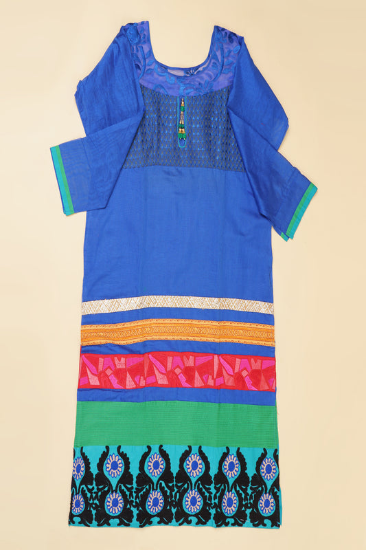 Blue and Red Digital Print Embroidered Unstitched Suit Piece