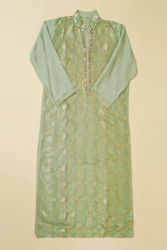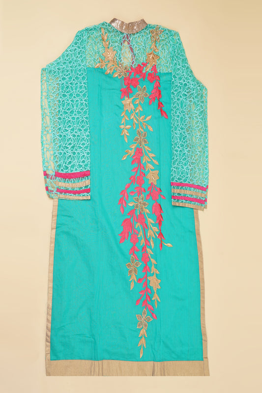 Mint Embroidered Mirrorwork Unstitched Suit Piece
