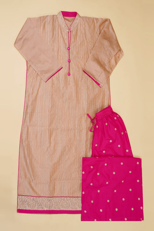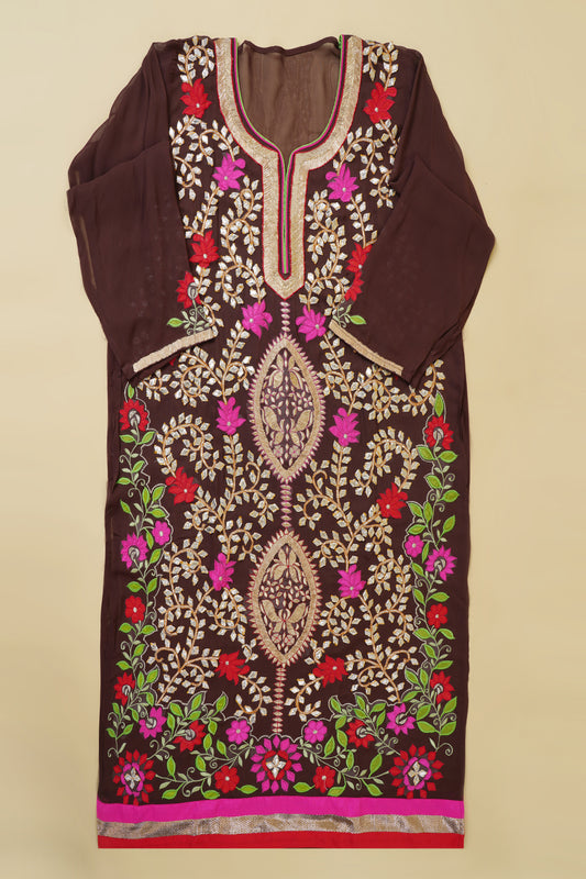 Brown Gota Work Embroidered Unstitched Suit Piece