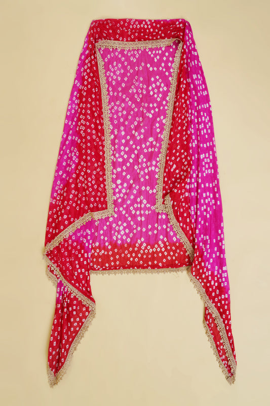 White with Pink Ombre Bandhani Shrug Unstitched Suit Piece