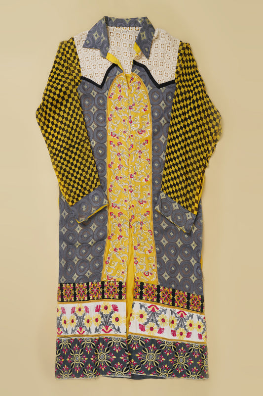 Yellow, Grey Lace and Pink Unstitched Suit Piece