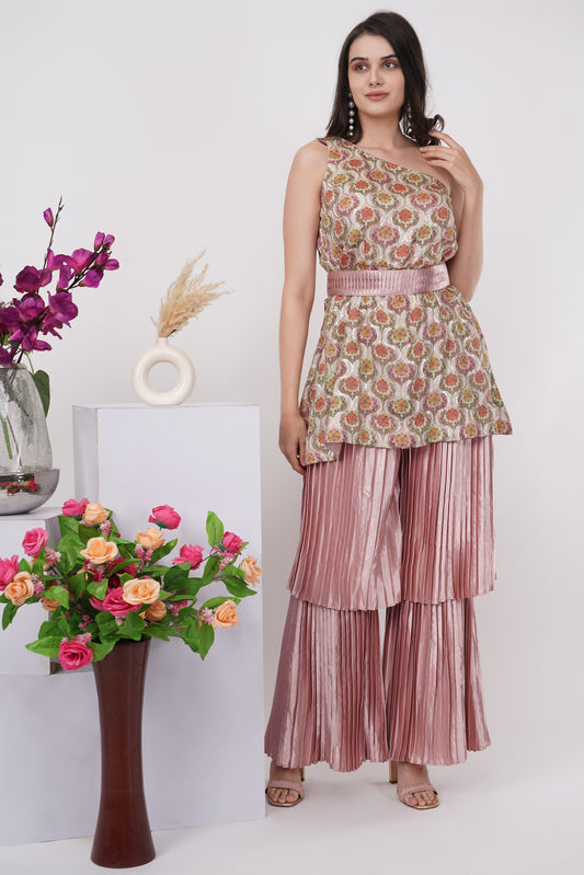 Floral One Shoulder Rose Pink Set
