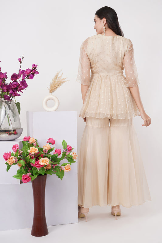 Cream Embroidered Peplum Set