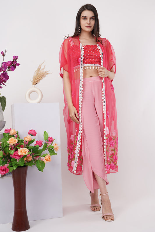 Pink Sheer Kurta, Bralette and Pants Set