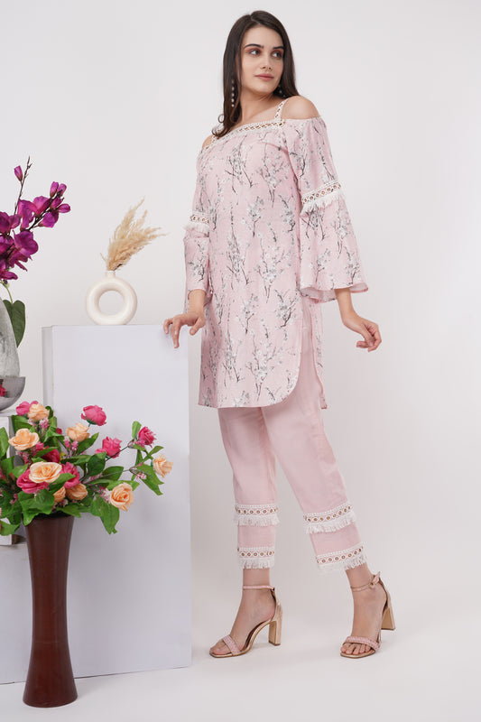 Baby Pink print and lace Co-ord Set