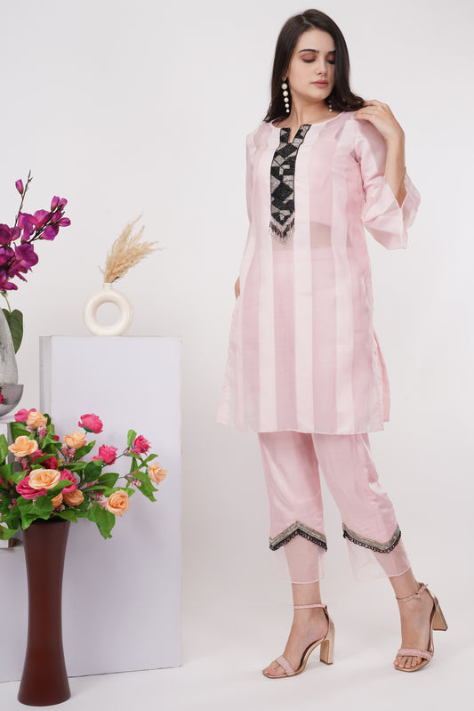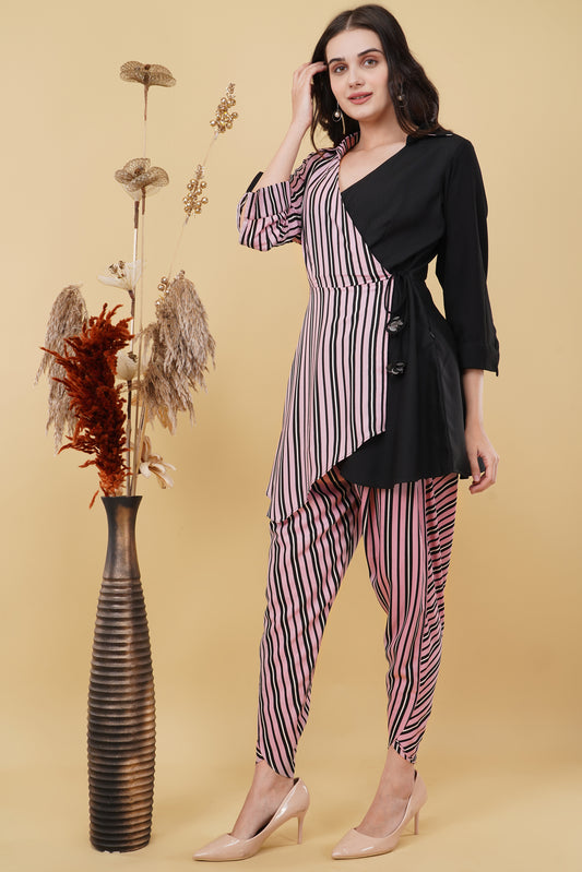 Pink and Black Stripes Colour Block Co-ord Set