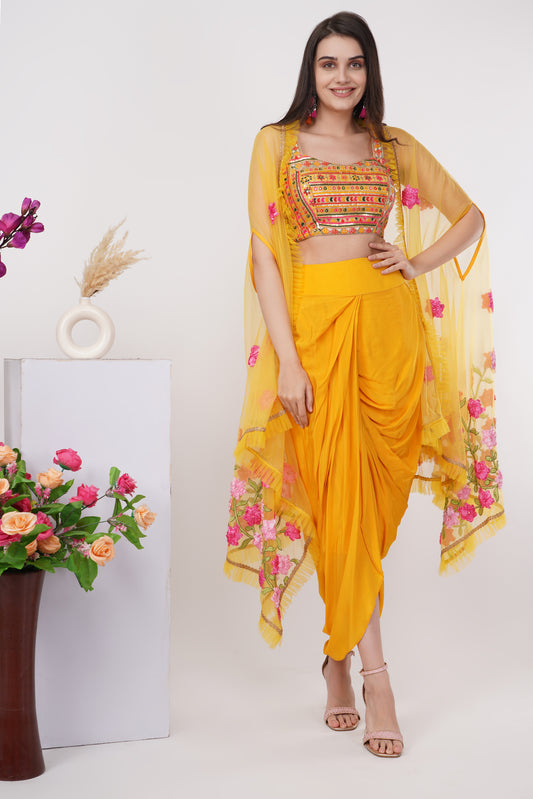 Yellow Floral Embroidered Shrug Set
