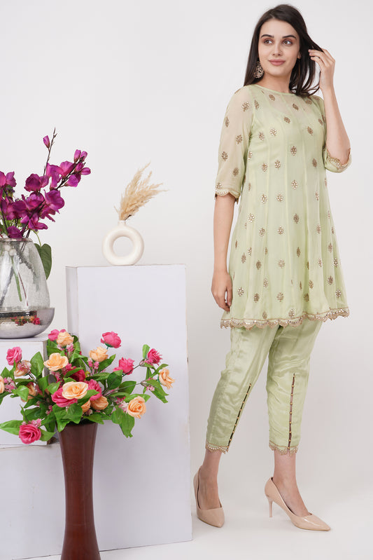 Mint Embroidered Tunic and Pants Set