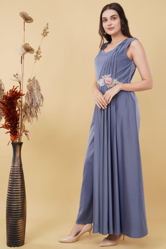 Dust Lavender Jumpsuit with Pleated Side and Floral Detail