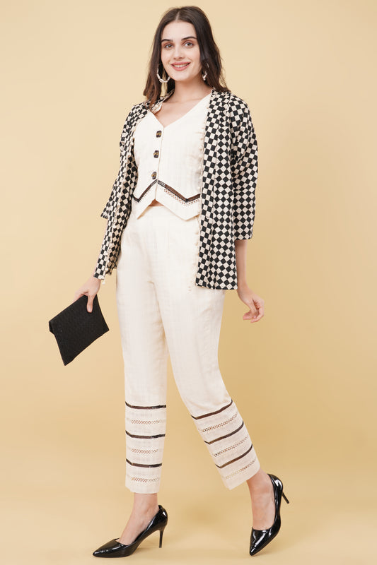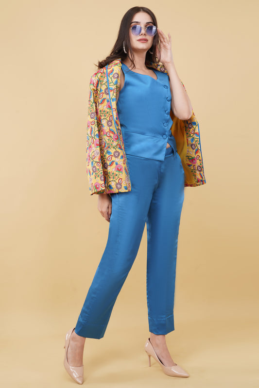 Kalamkari Print Pantsuit with Waistcoat