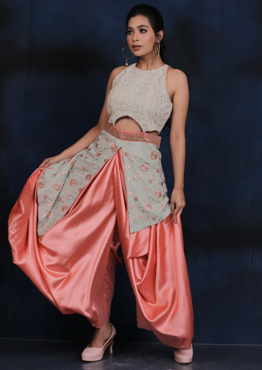 Mint and Peach Dhoti Set