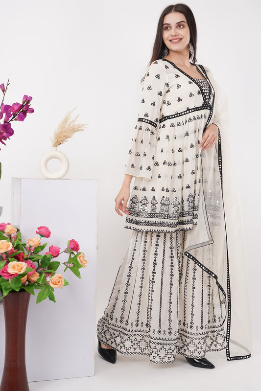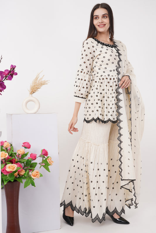 Monochrome Mirror Work Peplum Set