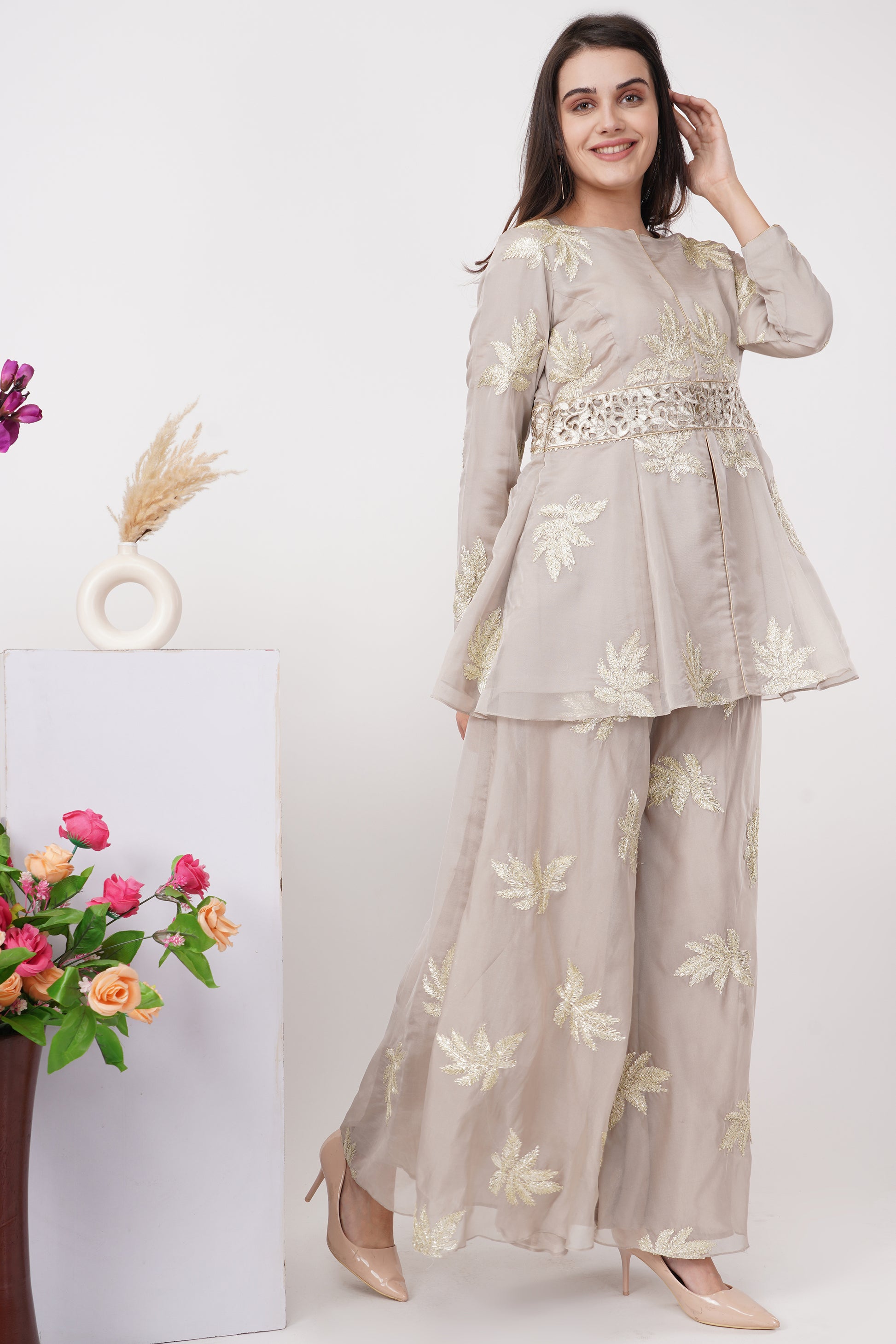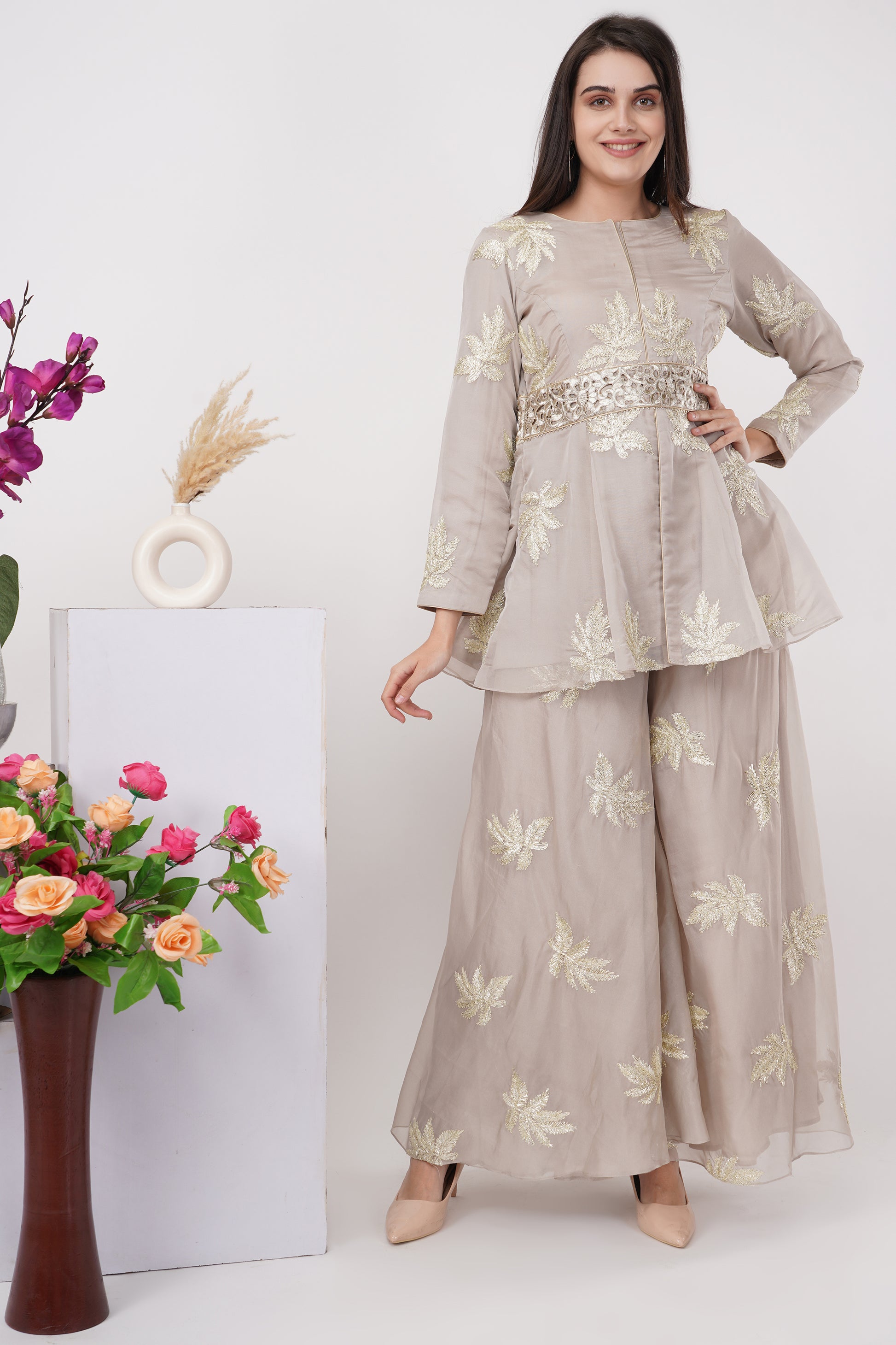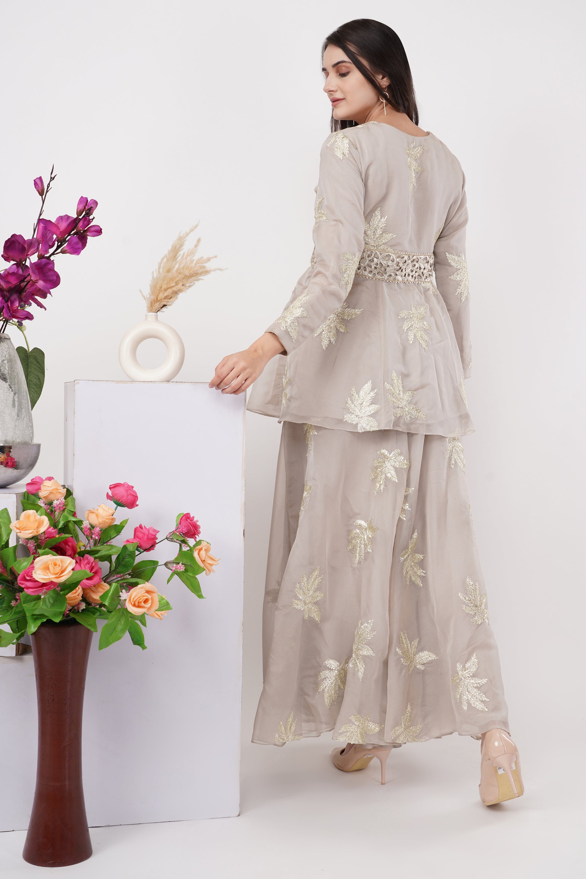 Grey Gota Work Co-ord Set is made from delicate organza fabric, this set features intricate Gota work motifs on the whole silhouette.
